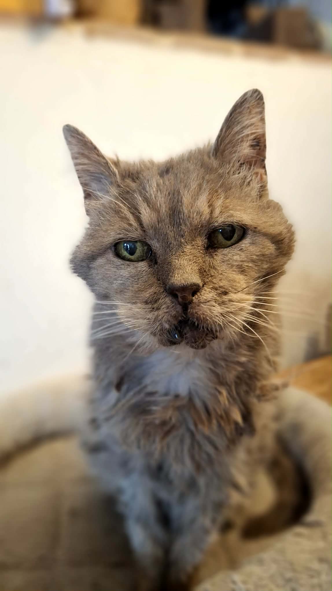 Elle bave toujours mais cela restera ainsi puisqu’une partie de sa langue été nécrosée par le virus.