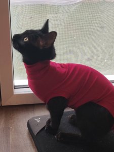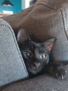 « Elle est je pense un peut inquiète quand je pars faire les courses et met un peut de temps avant de sortir de sa cachette quand je rentre, mais sinon elle est très heureuse autour de moi »