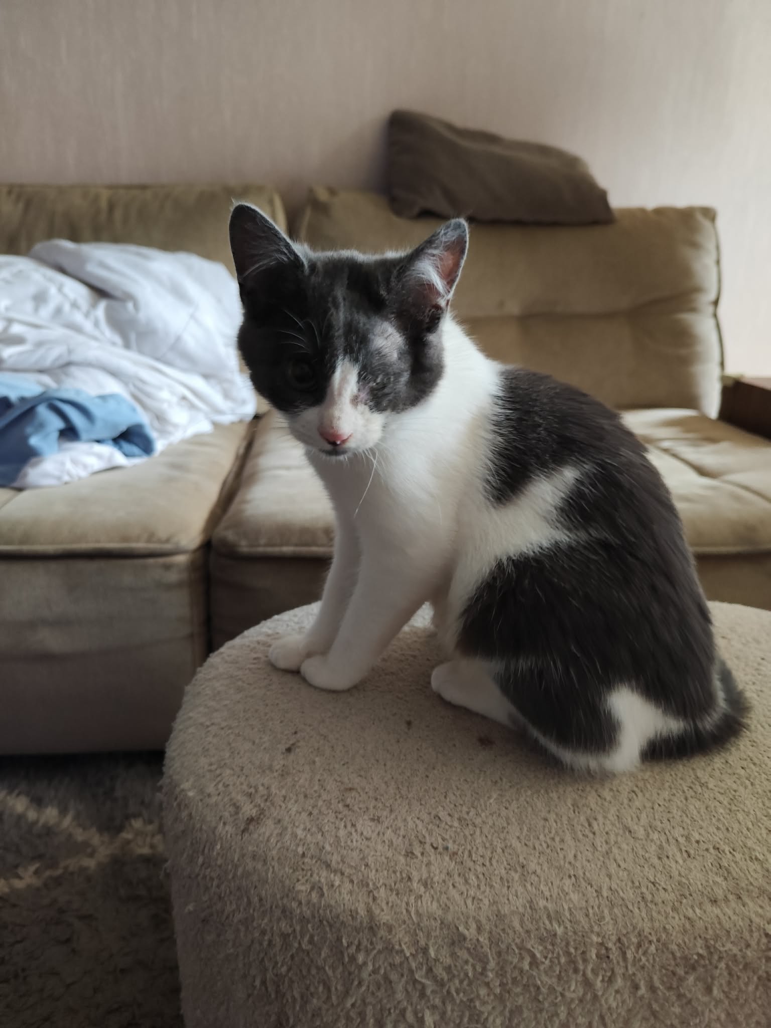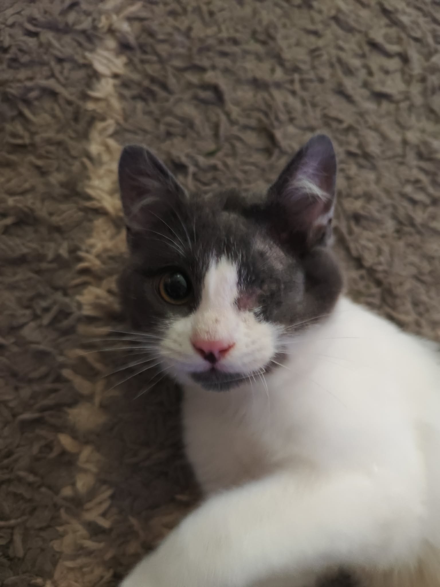 Addams et son frère Atchoum ont été trouvés dehors, avant d’être déposés chez l’un de nos vétérinaires partenaires. Ces derniers nous ont contacté afin que nous les prenions en charge.